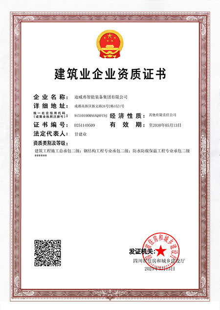 建筑资质二级(防腐保温、钢结构、工程施工总承包)